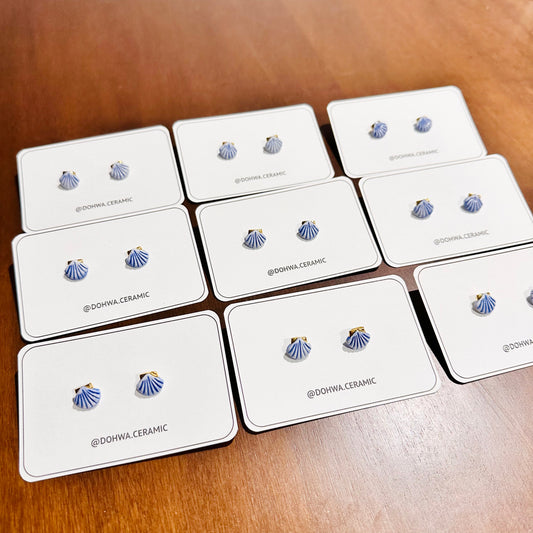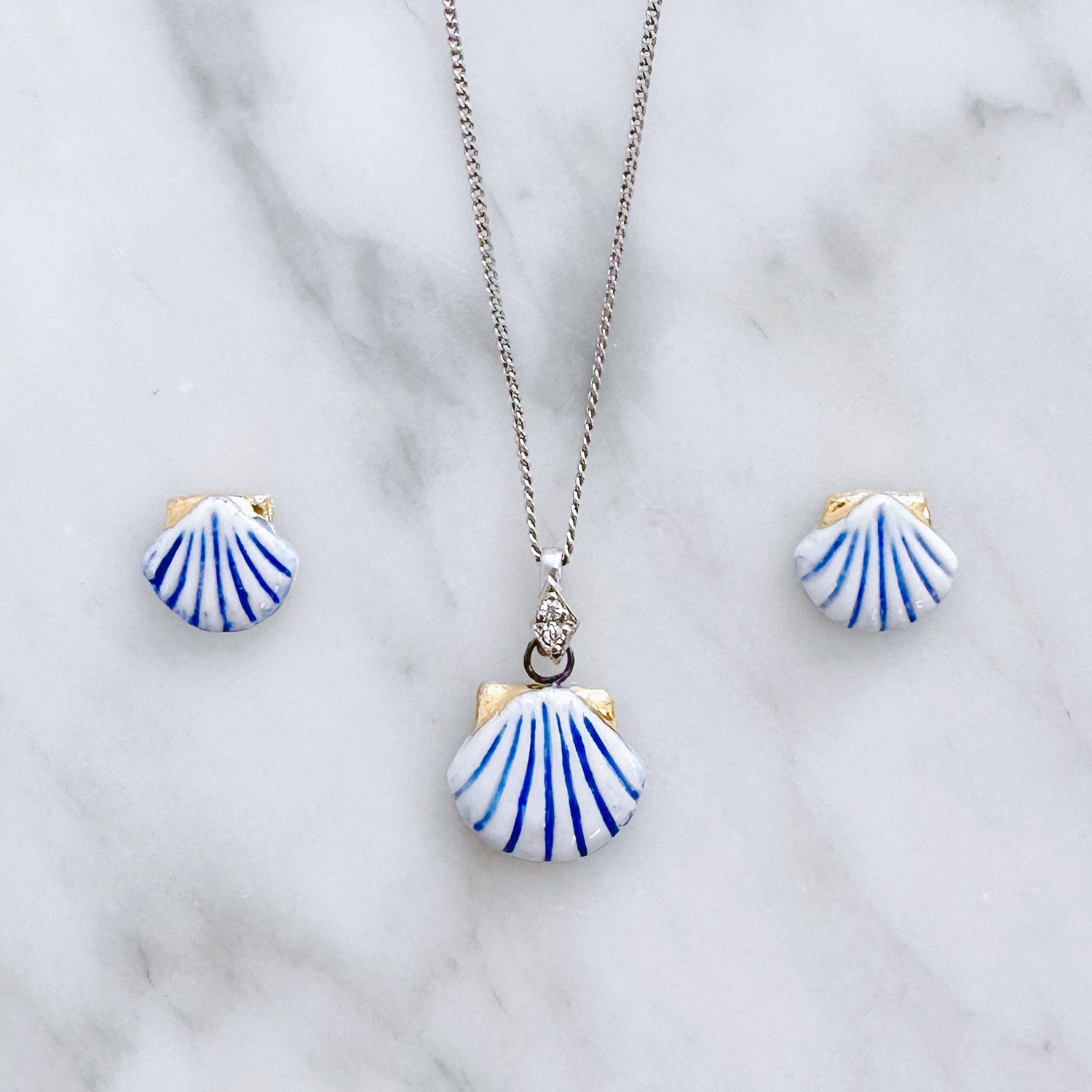 Camino de Santiago Ceramic Blue Shell Necklace Earring Jewelry Silver